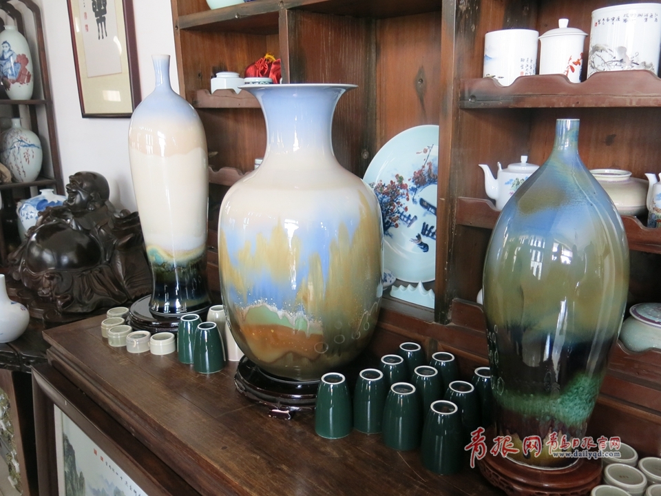 “你看瓶子上的顏色,這就是本地特有的瑯耶鐵紅和瑯耶天青。”經(jīng)過一天一夜的燒制,看到自己的作品終于成型,并且因窯變還出現(xiàn)了意想不到的驚喜,這讓在車間守了一天的葉師傅倍感興奮。葉師傅拿起一件有四種不同顏色的展瓶告訴記者,陶瓷顏色會因燒制溫度不同而發(fā)生變化,歷史上并沒有“瑯耶鐵紅”的記載,這種新式釉彩是在試驗中產(chǎn)生的。與景德鎮(zhèn)瓷器上的紅色相比,瑯耶鐵紅比較鮮艷;跟中國紅的顏色相比,瑯耶鐵紅比較柔,讓人看著明亮又舒服。