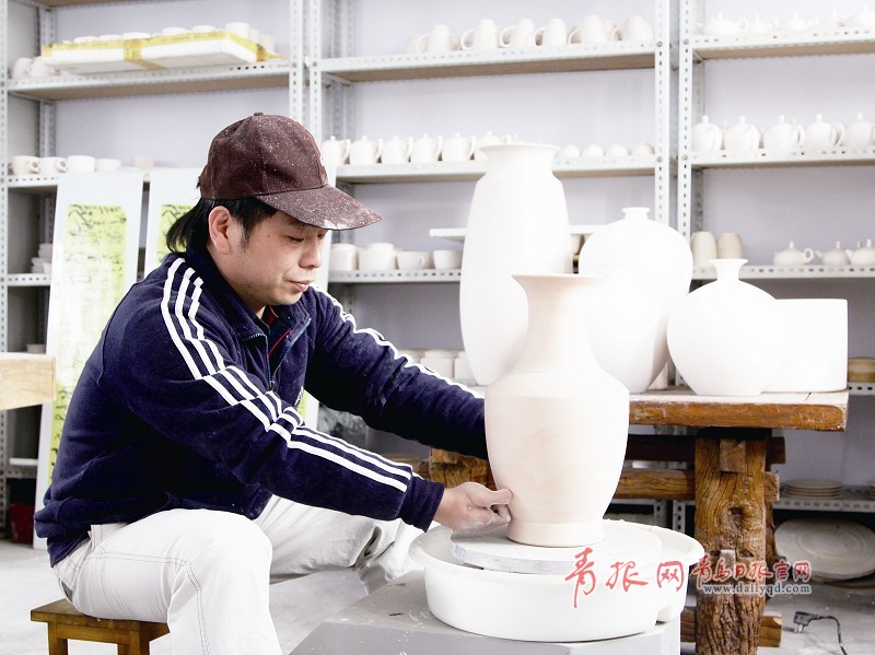 上釉。青島日報/青報網(wǎng)記者胡相洋攝