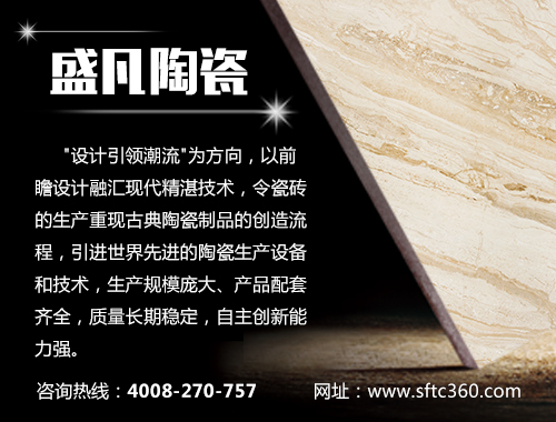 盛凡陶瓷堅持以"設計引領潮流"為方向,在全面引入國際質(zhì)量管理體系基礎上,以前瞻設計融匯現(xiàn)代精湛技術(shù),令瓷磚的生產(chǎn)重現(xiàn)古典陶瓷制品的創(chuàng)造流程,靈感發(fā)揚之際,科技猶如雙翼飛舞。在工藝追求精益求精的同時,融匯東西方精粹,糅合現(xiàn)代藝術(shù)與先進技術(shù)的各種元素,不斷創(chuàng)新,開發(fā)出引領時代、現(xiàn)代新穎的仿古磚產(chǎn)品。盛凡陶瓷力求與世界接軌、以科技和管理提升產(chǎn)品品質(zhì),以滿足國內(nèi)外顧客不斷發(fā)展的個性化需求。