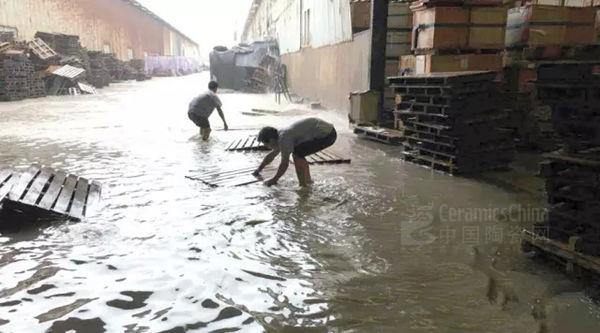 “馬路積水最深的時(shí)候,有1.5m左右,現(xiàn)在馬路上的積水還有50cm到60cm深。工廠里,原料倉和貨倉都進(jìn)水,最深都有50cm到60cm。所以這場大雨嚴(yán)重影響到了工廠的正常運(yùn)轉(zhuǎn)。”李昌進(jìn)說,中陶實(shí)業(yè)原料車間和倉庫積水,只好不停地用水泵抽出去,并在原料車間和倉庫周邊建起防洪墻,防止雨水回流回來,以保證連續(xù)生產(chǎn)。