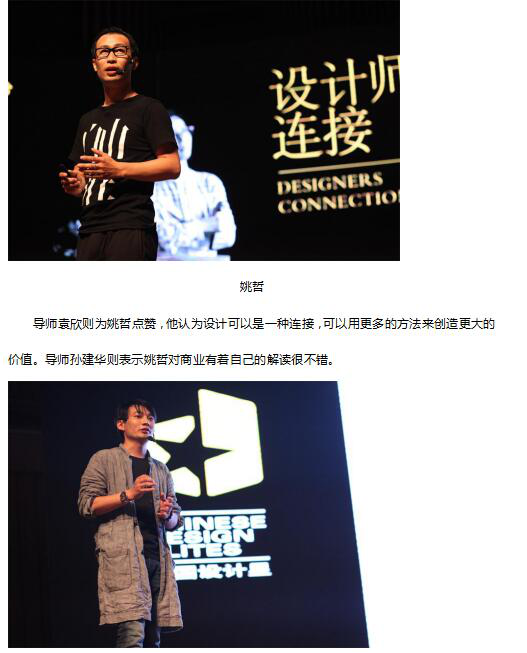 導(dǎo)師袁欣則為姚哲點(diǎn)贊,他認(rèn)為設(shè)計(jì)可以是一種連接,可以用更多的方法來(lái)創(chuàng)造更大的價(jià)值。導(dǎo)師孫建華則表示姚哲對(duì)商業(yè)有著自己的解讀很不錯(cuò)。