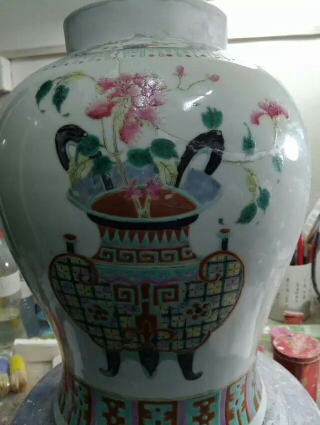 商品修復(fù)可上訴到清中期,宮里太監(jiān)把破損的偷拿出宮,修好了高價賣出,所用材料有蛋清,蟲膠,糯米湯等等,漸漸的就有了這種行業(yè)。清末,古陶瓷修復(fù)技藝已在社會上初步形成,當(dāng)時主要用蟲膠、樹膠和魚膠作為黏合劑,也有采用鋸釘?shù)霓k法,走街串巷來修補民間一些殘破瓷器。開埠后,這里更是古董商云集,古陶瓷極易破損的特性催生了一批專業(yè)修復(fù)人才,饒鴻發(fā)算是這項技藝的鼻祖。
