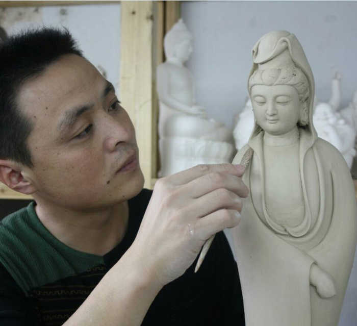 宗教雕塑第一人、明代陶塑家何朝宗是德化窯的代表性人物,是德化陶瓷人心中的祖師爺,其高超的陶瓷工藝仍流傳于世。現(xiàn)今,延續(xù)何派風(fēng)格的工藝藝人仍數(shù)不勝數(shù),林建平就是其中一位。