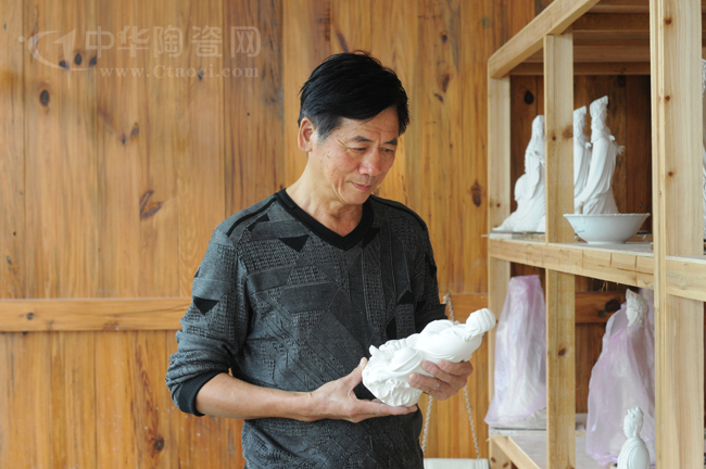 實心堆塑的創(chuàng)造需要耐性,要先取一塊備用煉制的坯泥揉捏出創(chuàng)作題材的軀干結(jié)構(gòu),然后用竹制雕刀、鐵制雕具等雕塑工具進(jìn)行各部位造型雕刻成型,雕好坯體后,還需等它自然涼干,而這一過程就需三四個月,爾后還需重復(fù)燒制十多次,這種制作方法是少數(shù)幾個德化老藝人的絕活。