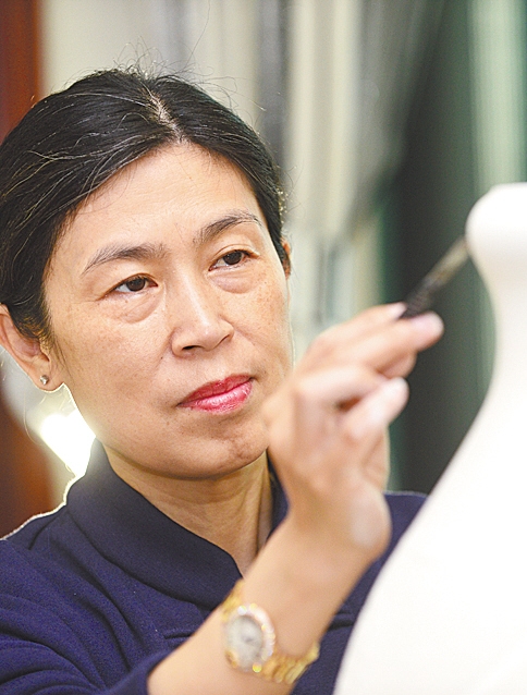 在景德鎮(zhèn)一個幽靜的工作室里,一杯清茶,幾縷濃香。古樸茶幾旁有位麗人,氣質(zhì)高貴而又親切可人;展柜里是各式樣的陶瓷,雖形不同,但都超凡脫俗而又根植傳統(tǒng),正如工作室名字——東方秀。這些藝術(shù)品,皆由麗人所做,麗人便是曾瑾。“瑾”有美玉之義,亦喻美德。人如其名,在景德鎮(zhèn)這個陶瓷藝術(shù)家“工廠”,曾瑾就是塊不可多得的“美玉”。
