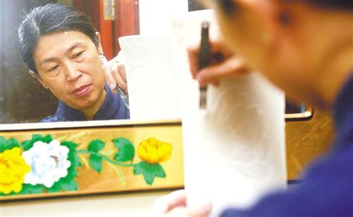 曾瑾在工作室刻畫作品,她認為作品是內(nèi)心的一面鏡子。