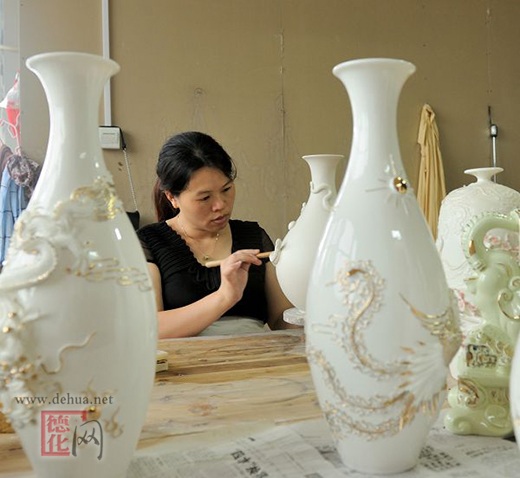 [記者吳惠民、王雙季、吳朝燁德化報導(dǎo)] 林靈月妹妹林麗品,則不同于姐姐,她獨(dú)鍾于漆線雕藝術(shù)。漆線雕作為閩南地區(qū)的傳統(tǒng)工藝,與德化白瓷的結(jié)合相得益彰。從編織瓷到傳統(tǒng)漆線雕,再到“瓷線雕”,十幾年的創(chuàng)作使她形成了自己的別樣風(fēng)格。其作品做工精細(xì)雅致,形象生動逼真、風(fēng)格古樸典雅,畫面栩栩如生,且每件產(chǎn)品都有自己的個性特色,既完美展示了德化白瓷的樸素純凈,又充分體現(xiàn)了漆線雕的獨(dú)特魅力。