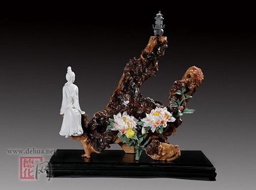 其作品《我心永恒》更通過多材質(zhì),多種塑造手法,以古樸滄桑的根藝為造型主體,再飾以精雕細(xì)琢的白瓷人物仕女,與栩栩如生的捏塑瓷牡丹遙相呼應(yīng),三者相映成趣。烘托出少女不甘寂寞,心有所屬,在寂寞寥落的凡塵中,依然低首凝思“山花爛漫、春暖花開”。