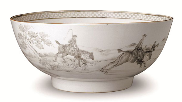 【清】帶捕獵圖的外銷潘趣碗 景德鎮(zhèn)瓷 1722—1735年