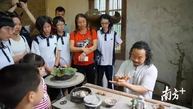 為了讓更多的人了解南山五彩釉,在三水區(qū)以及佛山市舉辦的各大文化活動中,總能看見楊英才的身影。自2016年開始,他還在工作室開辦“新農(nóng)人陶藝夜校”,每周一、三、五晚免費向周邊的陶藝愛好者傳授陶藝知識和技術(shù),指導(dǎo)他們制作屬于自己的陶藝作品,傳播南山五彩釉文化。