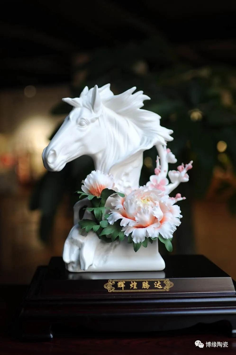 瓷花作品以德化特有的溫潤如玉,素凈淡雅的”中國白“為胎質(zhì),通過精細的瓷花工藝,雕刻得朝氣蓬勃的小鹿,賜予瓷花、小馬生命,塑造出了“春暖花開”、”百花爭艷、鳥語花香”的繁榮景象。