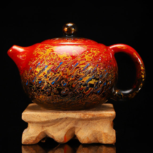 王存旭深愛當(dāng)?shù)靥厣a(chǎn)業(yè)德化瓷器。積極創(chuàng)新尋找漆畫技法表現(xiàn)更多的“可能性”致力研究德化白瓷與漆器結(jié)合。創(chuàng)作出漆藝功夫茶具,茶道配件、單杯茶器等一系列產(chǎn)品。漆藝與茶器的碰撞,將現(xiàn)代的時尚元素、色彩、造型與傳統(tǒng)漆藝技法相“混搭”實用與審美并重,使漆藝真正走出搏物館,走入大眾生活。體現(xiàn)豐富文化內(nèi)涵和更高藝術(shù)價值。