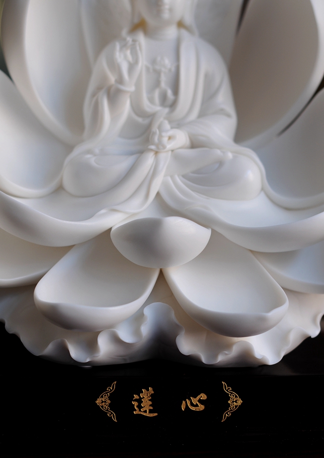 手持玉瓶,盤坐于優(yōu)美綻放的蓮花臺,形象精心塑造