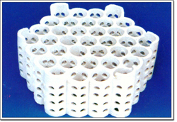 瓷質(zhì)全瓷填料是本公司在有關(guān)填料專家指導(dǎo)下,參照國內(nèi)和國外現(xiàn)有不同材質(zhì)、不同形狀、不同規(guī)格填料,研制出的一種能適應(yīng)大小型冷卻塔內(nèi)的一種新型材料填料,它克服了傳統(tǒng)水泥格板粗笨,淋水效果差,阻力大等缺陷;塑料填料遇冷、遇熱易老化,易塌落,檢修麻煩等不足之處;以及陶瓷填料易破碎等。完全滿足冷卻塔所需淋水密度、熱力、阻力要求,F(xiàn)已獲得國家專利;光華環(huán)外觀設(shè)計(jì)專利ZL01 3 40296.X,光華環(huán)實(shí)用新型專利ZL01 2 57154.7,光華葵花環(huán)專利申請?zhí)枺?00520051515.0,光華條紋環(huán)專利申請?zhí)?00520051516.5。 1、使用壽命長達(dá)五十年以上。 2、經(jīng)過千度以上高溫?zé)Y(jié),不變形,不老化,不堵塞,抗壓強(qiáng)度高,熱穩(wěn)定性好。 3、冷卻效果穩(wěn)定,免維護(hù)。 4、耐酸,耐堿,耐腐蝕,對冷卻水質(zhì)無要求 5、抗凍融性能好。 |