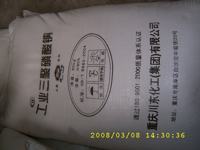工業(yè)三聚磷酸鈉 (STPP) 分子式:Na5P3O10 分子量:367.86 規(guī) 格:符合GB9983-2004; 客戶(hù)要求 包 裝:25Kg、50Kg內(nèi)塑外編袋裝;集裝噸袋;客戶(hù)要求 用 途:用作洗滌品助劑,亦可用于石油、冶金、采礦、造紙、水處理等。主要用作合成洗滌劑的助劑,用于肥皂增效劑和防止條皂油脂析出和起霜。對(duì)潤(rùn)滑油和脂肪有強(qiáng)烈的乳化作用,可用于調(diào)節(jié)緩沖皂液的PH值。工業(yè)用水的軟水劑。制革---劑。染色助劑。油漆、高嶺土、氧化鎂、碳酸鈣等工業(yè)中配制懸浮時(shí)作分散劑。鉆井泥漿分散劑。造紙工業(yè)用作防油污劑。 |