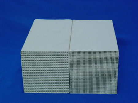 蜂窩陶瓷蓄熱體 ◆優(yōu)點:壁薄孔徑小,具有比表面積大,熱膨脹系數(shù)小,蓄熱放熱速度快,壓力損失小等 ◆材質(zhì):堇青石(2MgO、2AL2O3、5SiO2)、莫來石質(zhì)、高鋁質(zhì)、剛玉質(zhì)等 ◆規(guī)格:根據(jù)用戶要求加工100×100,100×150,150×150等 ◆孔型:正方形、矩形,圓形、三角形,六邊形等 ◆孔數(shù):可根據(jù)用戶要求加工(1~400孔/平方英寸) 蜂窩陶瓷蓄熱體 ◆優(yōu)點:壁薄孔徑小,具有比表面積大,熱膨脹系數(shù)小,蓄熱放熱速度快,壓力損失小等 ◆材質(zhì):堇青石(2MgO、2AL2O3、5SiO2)、莫來石質(zhì)、高鋁質(zhì)、剛玉質(zhì)等 ◆規(guī)格:根據(jù)用戶要求加工100×100,100×150,150×150等 ◆孔型:正方形、矩形,圓形、三角形,六邊形等 ◆孔數(shù):可根據(jù)用戶要求加工(1~400孔/平方英寸)