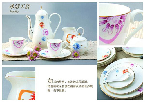 【品名】冰清玉潔餐具茶具 【材質】高白強化骨瓷,經過1380度高溫燒制而成,聲音清脆 【規(guī)格】60頭 【等級】一等精品 【包裝】禮品盒